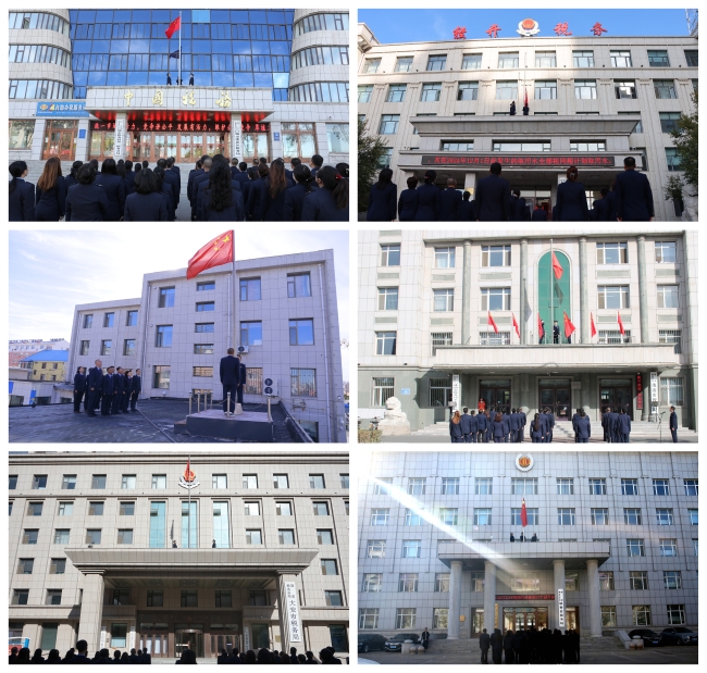 上午9时,伴随着雄壮激昂的《义勇军进行曲》,鲜艳的五星红旗冉冉升起,全体同志整齐列队、精神抖擞,庄严地面向国旗行注目礼,满怀深情高唱国歌,在嘹亮的国歌声中,深切表达对伟大祖国的美好祝愿。