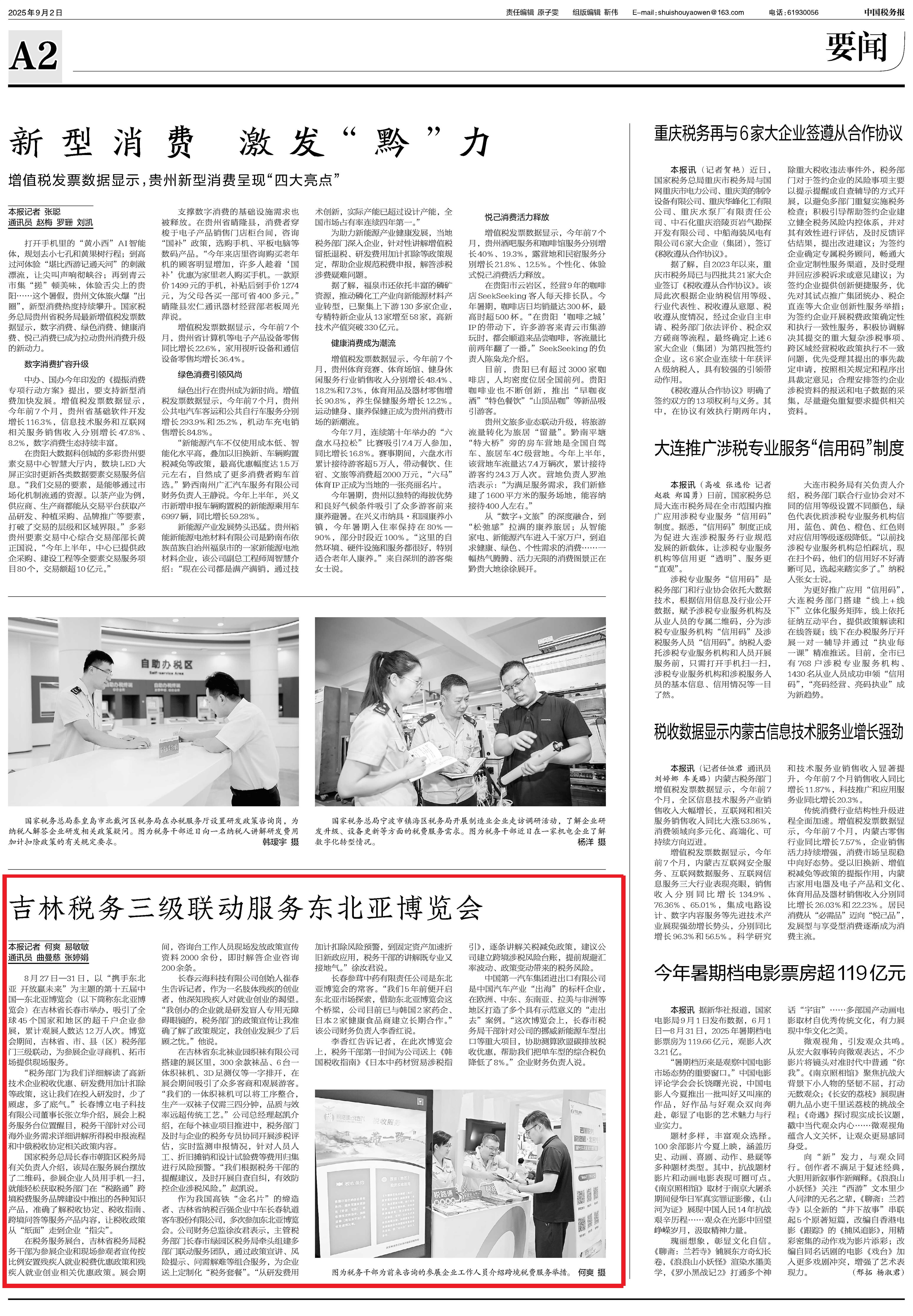 作为我国高铁“金名片”的缔造者、吉林省纳税百强企业中车长春轨道客车股份有限公司,多次参加东北亚博览会。公司财务总监徐汝君表示,主管税务部门长春市绿园区税务局牵头组建多部门联动服务团队,通过政策宣讲、风险提示、问需解难等组合服务,为企业送上定制化“税务套餐”。“从研发费用加计扣除风险预警,到固定资产加速折旧新政应用,税务干部的讲解既专业又接地气。”徐汝君说。